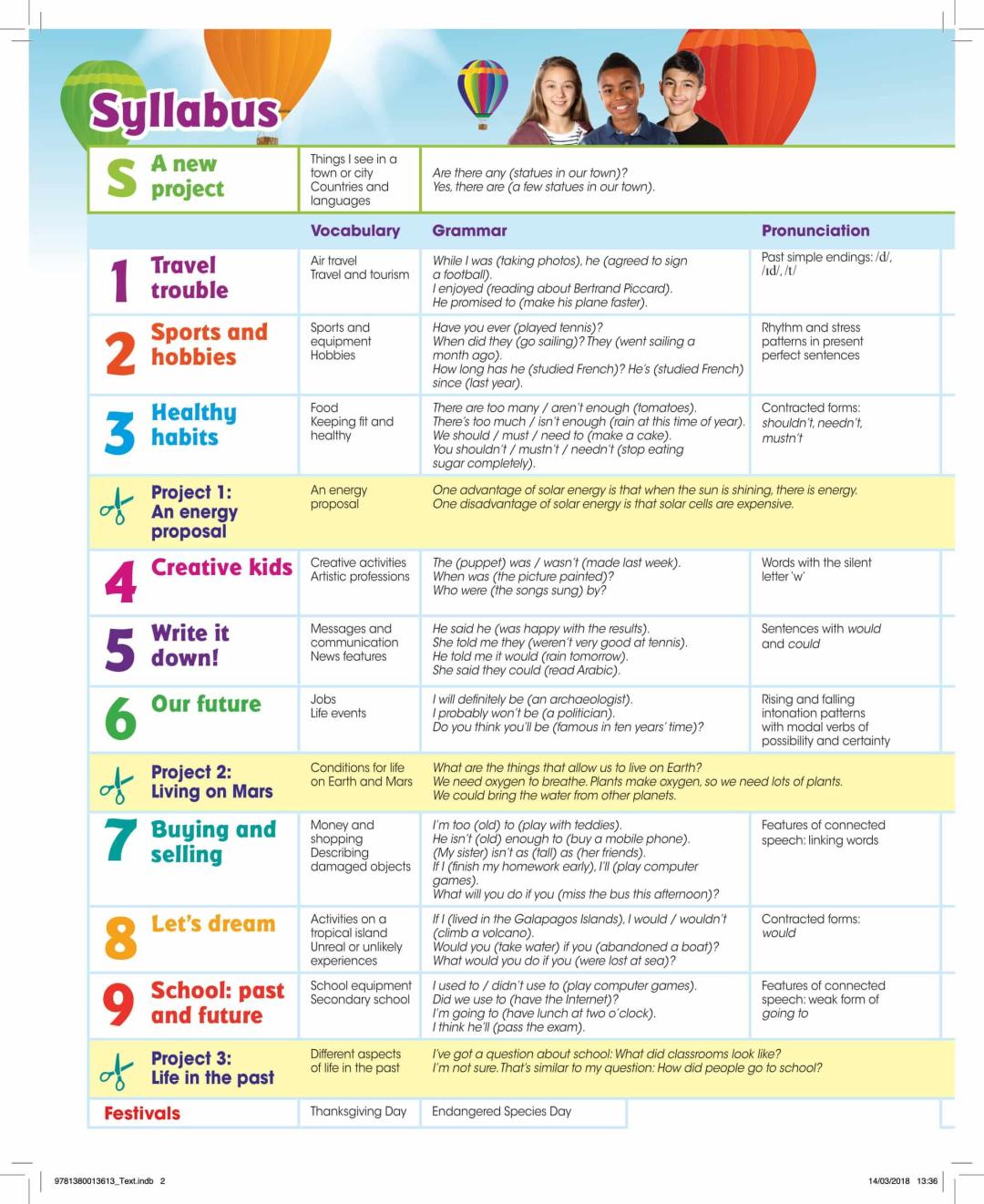 Vadovėlis „Give Me Five! 6“ yra šeštoji iš šešių vadovėlių serijos dalis. Raštingumas apima skaitymą ir rašymą. Klausymo, skaitymo, kalbėjimo, rašymo ir vaizdo įrašų peržiūros veiklos integruotos kiekvieno skyriaus pamokose.