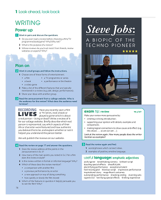 Vadovėlio skyriai „Explore“, „Exam tips“, „Independent learning“, „Review unit“ apimantys pasirengimą egzaminui, padeda mokiniams ugdytis mokymosi mokytis bei strateginę kompetenciją. Vadovėlyje pateikiamas gramatikos sąvadas, kuriuo mokiniai gali naudotis atlikdami įvairių tipų užduotis. Taip pat pateikiamas rašymo sąvadas, kuriame mokoma analizuoti įvairių tipų tekstus, jų turinį, retorinę struktūrą, kalbinę raišką bei vertinti mokinių sukurtus tekstus pagal detalius kriterijus. Apibendrinta standartinio egzamino specifikacija apima ne tik testo užduočių turinį ir formą, bet ir užduočių atlikimo strategijas, kurias mokiniai gali taikyti atlikdami testus.